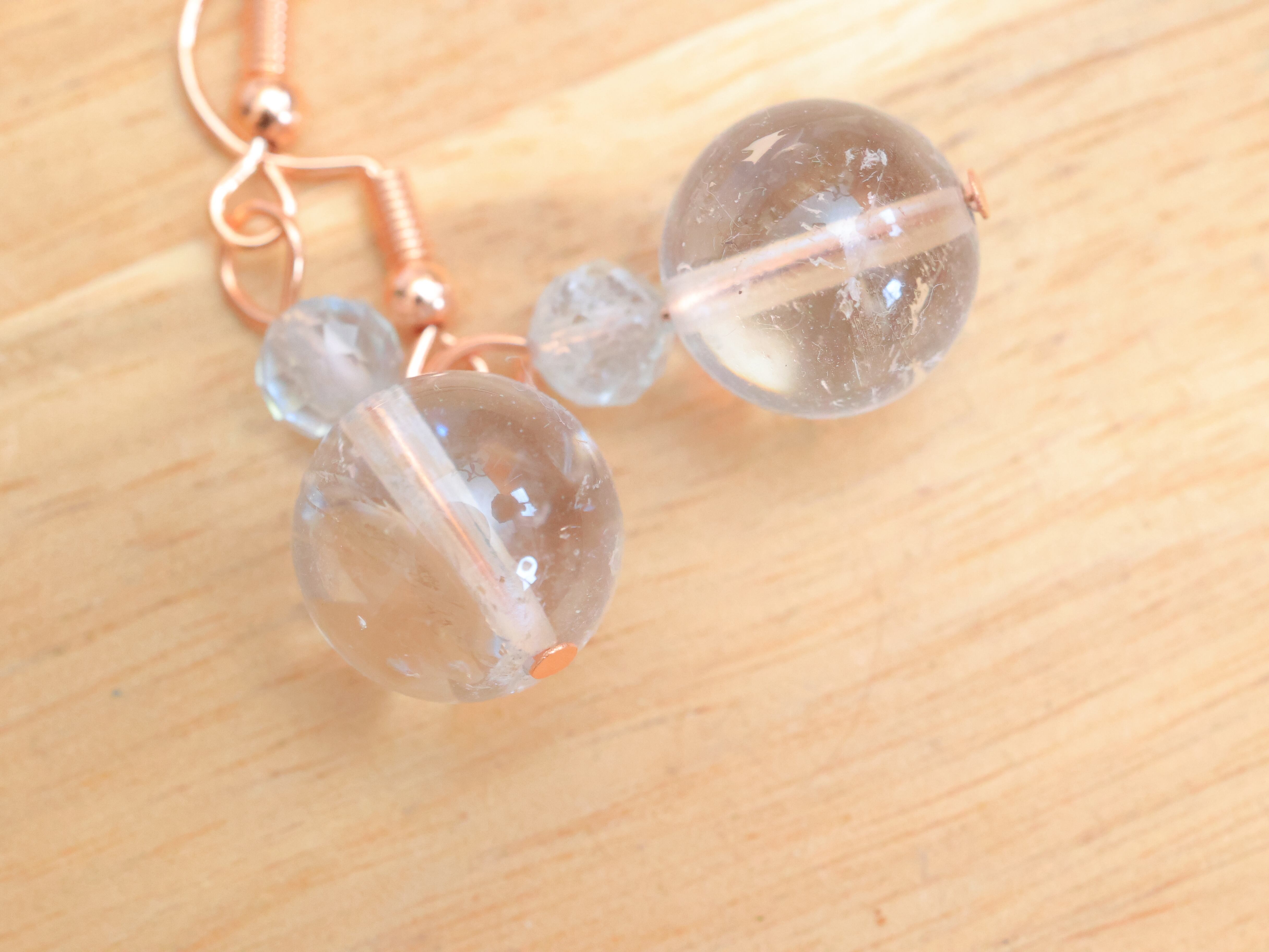 ・素材は天然のヒマラヤ水晶とアクアマリン、金具はアレルギー対応の素材を使用。